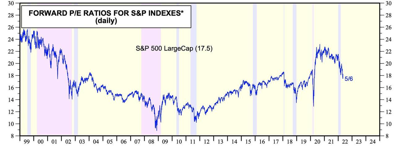 Come ultimo spunto della rubrica, si rappresenta di seguito il grafico del rapporto tra Prezzo e Utile (Capitalizzazione di Borsa/Utile Netto) delle società componenti l’indice azionario S&P500 dal 1999 ad oggi che è tornato vicino alla media storica di 18 volte, dopo il recente calo della Borsa americana e l’aumento degli utili attesi annunciato dalle società nel 2022.