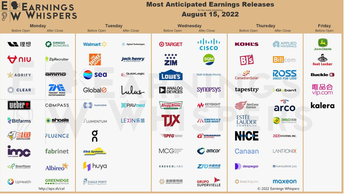 Di seguito si rappresenta il calendario delle trimestrali delle società quotate a Wall Street che riportano i risultati nella settimana in corso.