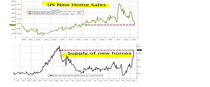 Sempre negli Stati Uniti, i dati sulle vendite delle case confermano la forte contrazione del mercato immobiliare (si vedano i grafici che seguono), cosi come era stato prospettato da alcune indagini sul sentiment del mercato effettuate da alcune sedi regionali della Federal Reserve .