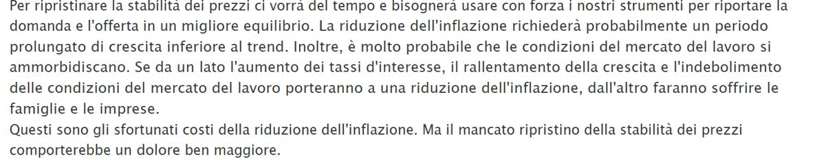 Il numero uno della Fed ha infatti ribadito che intende proseguire con decisione con la stretta monetaria (rialzo dei tassi di interesse) finché non sarà sicuro che l’inflazione sarà sotto controllo anche se tale processo “causerà un certo dolore a famiglie e imprese”.