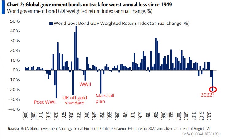 Come si può notare, da inizio 2022 la performance del suddetto indice è pari a -20%, un livello che non si vedeva dal lontano 1949.