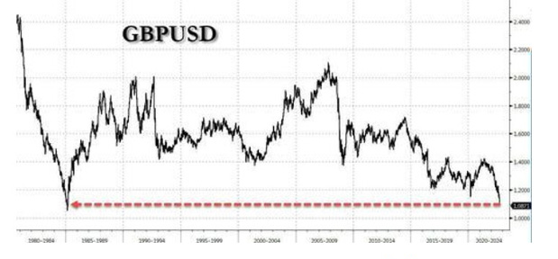 Andamento del cambio sterlina/dollaro dal 1980 a oggi