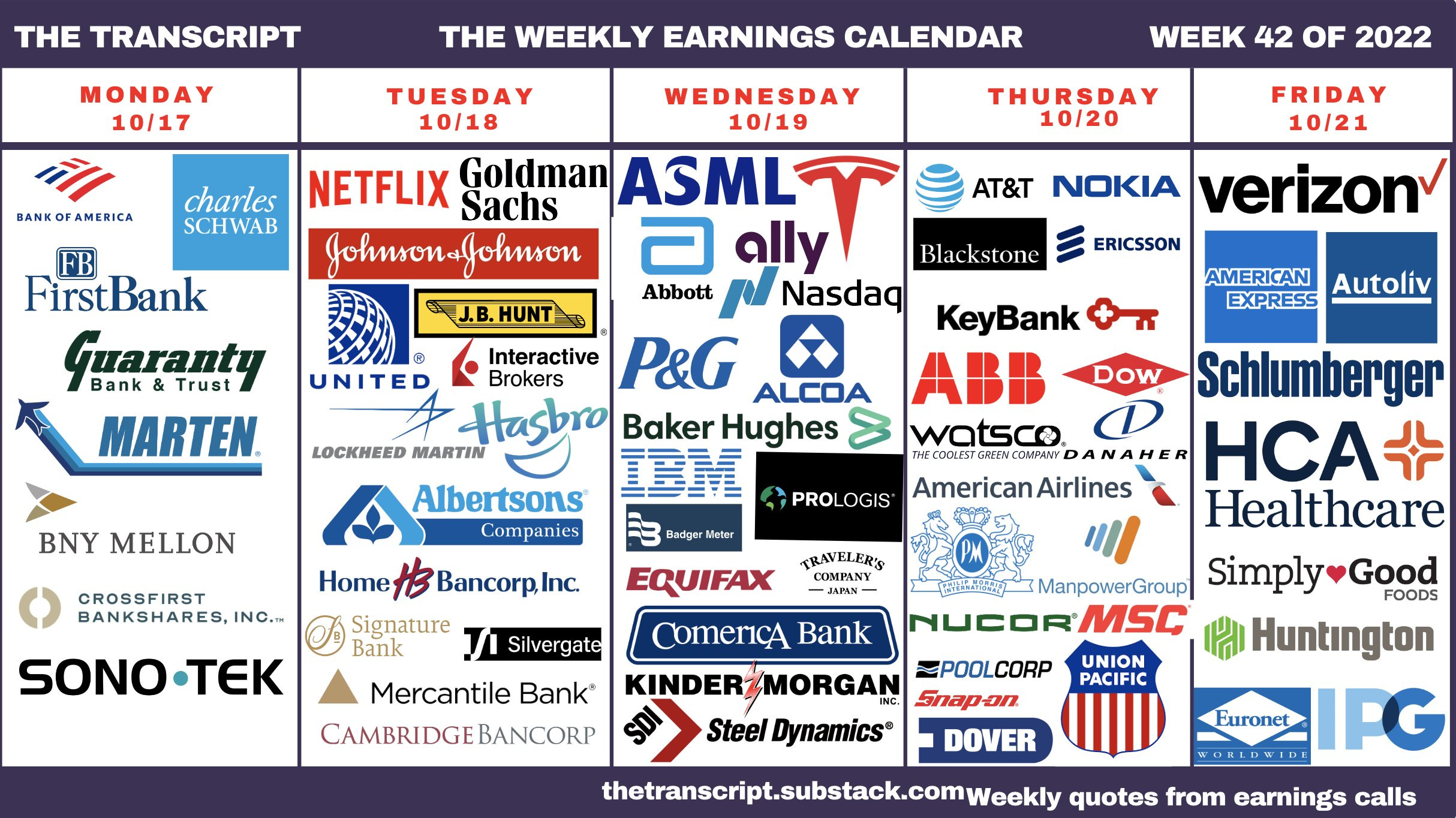 Di seguito si rappresenta il calendario delle trimestrali delle società quotate a Wall Street che riportano i risultati nella settimana in corso: