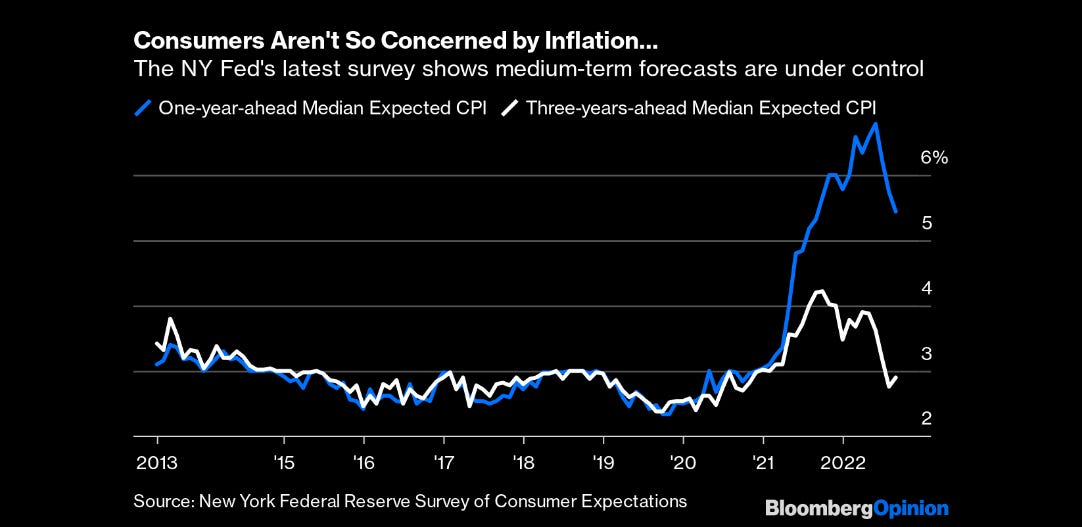 Sempre in tema di inflazione, la scorsa settimana è stata pubblicata l’ultima analisi della Fed di New York, dalla quale si evince un sostanziale declino delle aspettative di inflazione negli Stati Uniti a 1 anno e a 3 anni rispetto ai picchi toccati a inizio anno, come evidenziato nel grafico che segue.