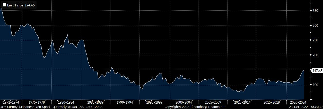 Grafico del cambio dollaro/yen dal 1971 a oggi