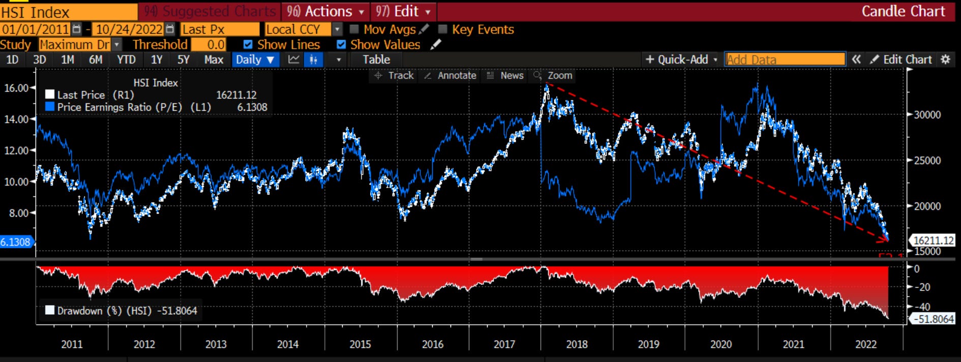 Andamento della Borsa di Hong Kong dal 2011 a oggi