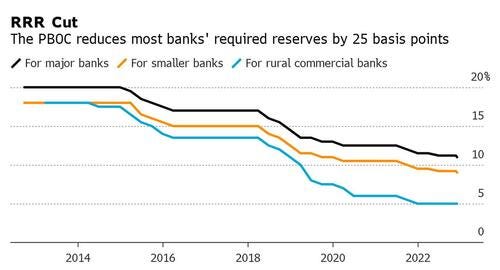 La Banca Centrale cinese, per reagire alla nuova minaccia della pandemia, ha deciso il taglio dello 0,25% della riserva obbligatoria delle istituzioni finanziarie liberando così 500 miliardi di yuan (69,79 miliardi di dollari) a sostegno della liquidità dei mercati e dell’economia reale, come evidenziato nel grafico che segue.