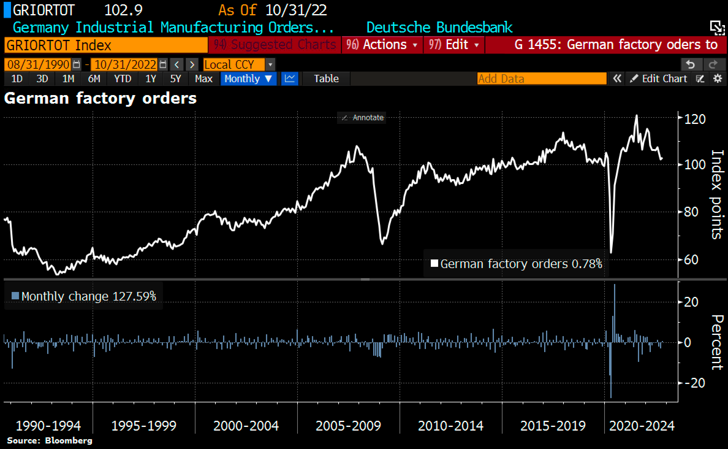 In Europa è stato pubblicato il dato sugli ordini delle fabbriche tedesche nel mese di ottobre, in crescita dello 0,8% su base mensile rispetto a una stima degli analisti di un incremento dello 0,1%, a testimonianza di come l’economia tedesca si stia reagendo meglio del previsto ai venti contrari provocati dalla guerra tra Russia e Ucraina e dal conseguente rialzo dei prezzi.