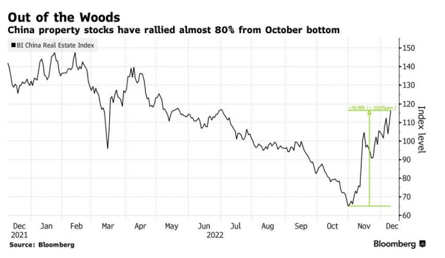 I suddetti provvedimenti stanno alimentando le aspettative di un possibile rimbalzo dell’economia cinese, come già evidenziato da alcuni segnali incoraggianti provenienti dalle quotazioni borsistiche dei titoli delle società del settore immobiliare che stanno vivendo un poderoso recupero dai minimi toccati lo scorso mese di ottobre.