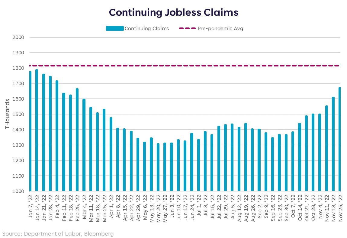 Grafico delle richieste di sussidi di disoccupazione settimanali da giugno 2022 a oggi