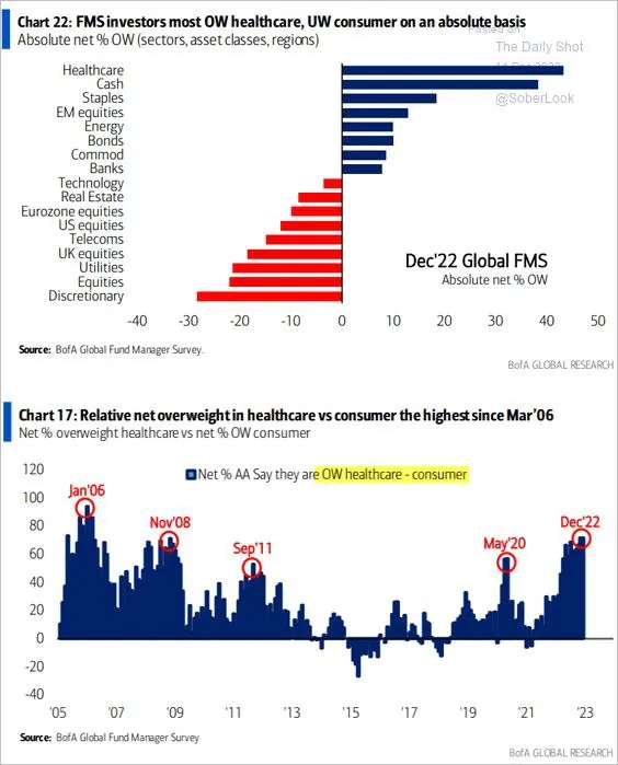 Il posizionamento dei gestori rimane robusto verso i settori meno ciclici come il farmaceutico e i consumi al dettaglio, i quali si sono ben comportati nel 2022.