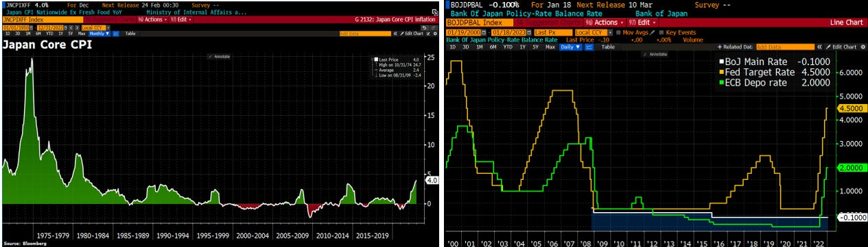 La riunione della Bank of Japan della scorsa settimana non ha sortito alcun tipo di cambiamento nella politica monetaria espansiva giapponese nonostante l’inflazione abbia toccato il 4%, un livello che non si vedeva da molti anni.