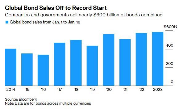 Sul fronte obbligazionario il mese di gennaio ha visto un boom di nuovi collocamenti a livello globale, tutti facilmente assorbiti dal mercato grazie ai rendimenti molto interessanti in seguito al movimento di forte rialzo dei tassi di interesse che ha caratterizzato lo scorso anno.
