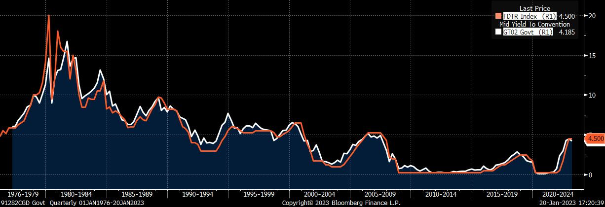 Negli Stati Uniti segnaliamo l’ulteriore calo dei tassi nel corso dell’ultima settimana, con il rendimento del Treasury bond con scadenza biennale che è tornato al di sotto del livello dei Fed Funds, una tendenza che lascia presagire un allentamento della politica restrittiva della Federal Reserve in quanto in passato quando si è realizzata questa circostanza si è poi verificata un’inversione nella politica monetaria della Banca Centrale americana.
