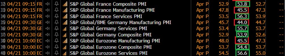 In Europa i PMI mostrano una dicotomia tra servizi e manifattura, con i primi molto forti che lasciano aperte aspettative di prezzi ancora elevati alla luce del peso rilevante della componente servizi all’interno del paniere dell’inflazione europeo.