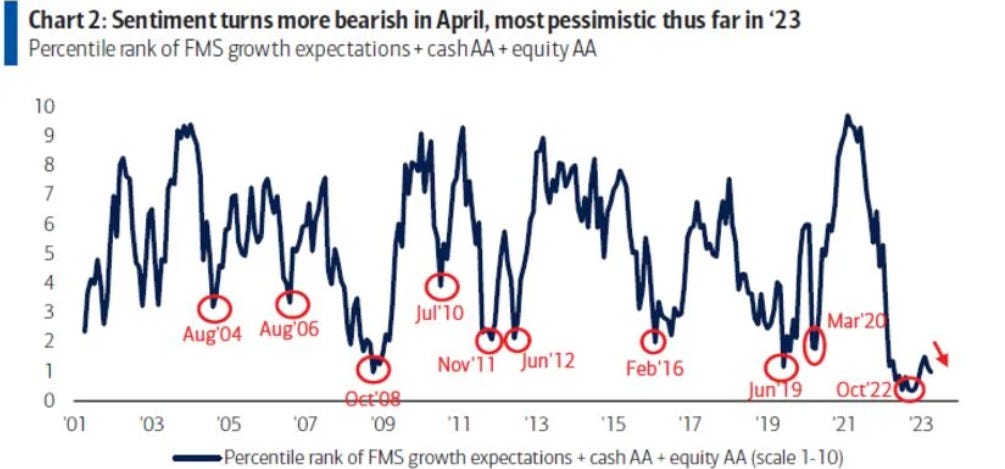 Solo una pausa del ciclo di rialzi dei tassi della Federal Reserve e l’inflazione sotto il 5% potrebbero indurre gli intervistati ad assumere una posizione costruttiva sull’azionario.
