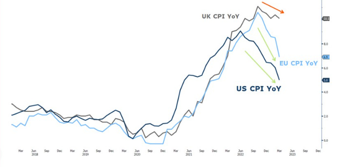 Discorso a parte va fatto per l’Inghilterra, dove l’inflazione nel mese di aprile registra ancora un valore a doppia cifra (10,1%) con il dato “core” (depurato dei prezzi dei generi alimentari e dell’energia) che è salito a +6,2% rispetto al +6% del mese precedente.