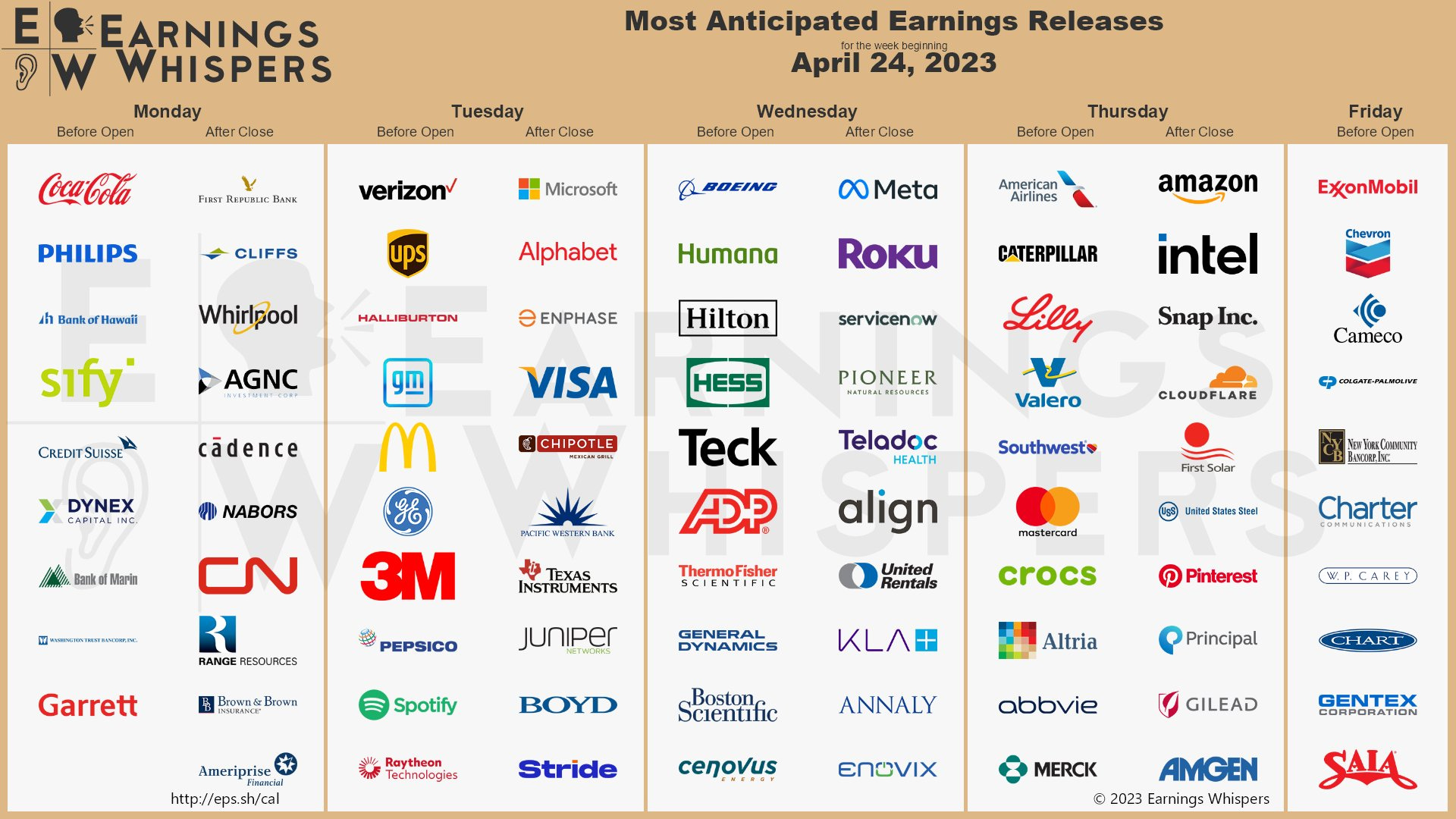 Di seguito il calendario delle trimestrali delle società quotate a Wall Street che riportano i risultati nella settimana in corso, tra le quali segnaliamo le “Big Tech” Amazon, Microsoft, Meta e Google. Inoltre il 24 riporterà i dati First Republic Bank, l’istituto salvato lo scorso mese di marzo grazie all’intervento di undici grandi banche statunitensi che hanno accettato di contribuire con un totale di 30 miliardi di dollari in depositi per evitare il crac. Sarà interessante valutare il dato relativo all’andamento dei depositi.