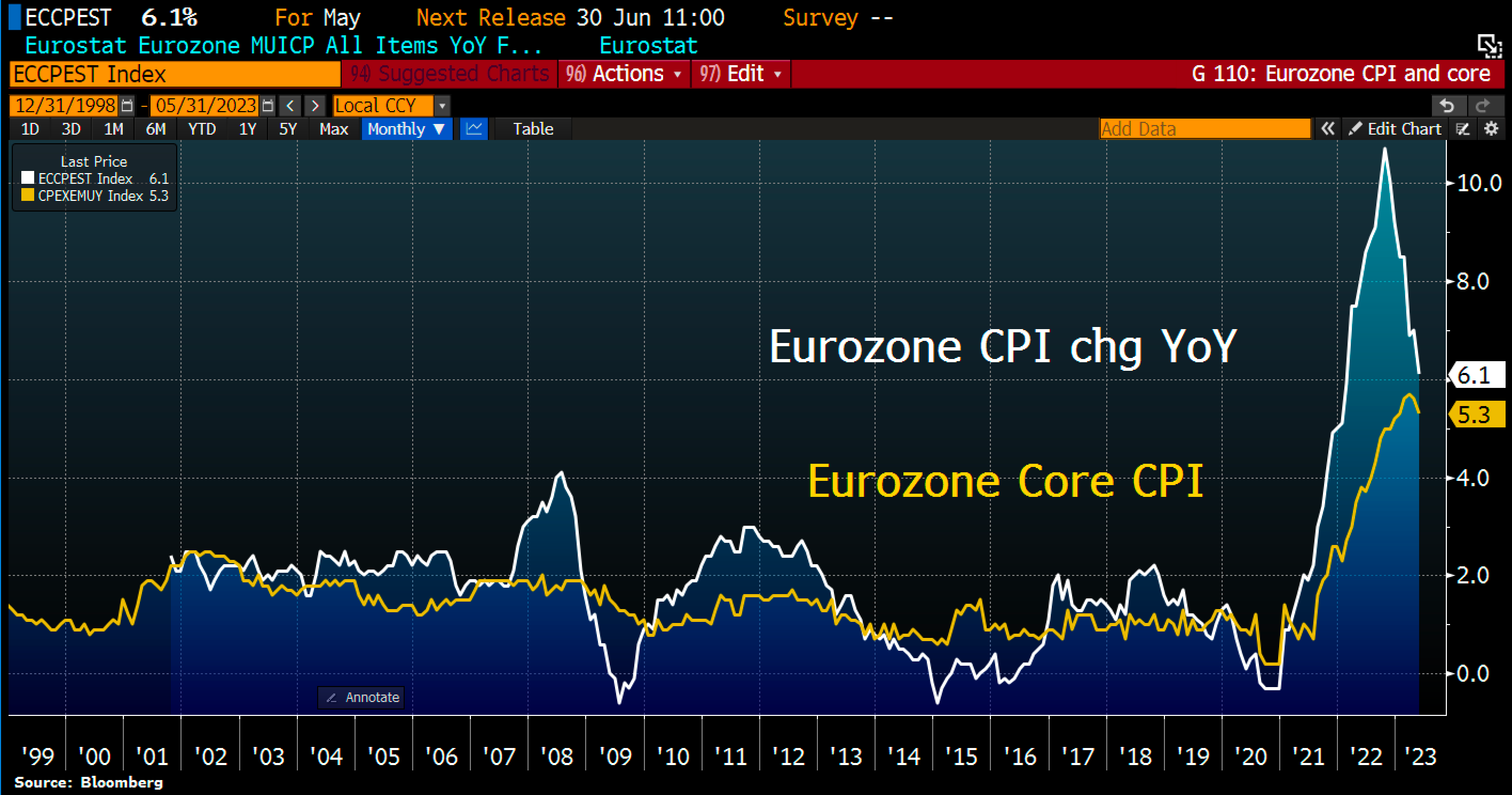 I dati sull’inflazione in Europa sono risultati inferiori alle attese rispettivamente in Spagna, Francia e Germania mentre in Italia il buon andamento del comparto dei servizi ha spinto l’indice dei prezzi al consumo sopra le stime degli analisti, favorendo allo stesso tempo la revisione al rialzo delle stime di crescita del PIL per il 2023.