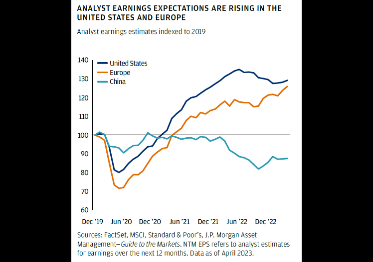 Come si può notare, in tutte e tre le aree economiche il pessimismo ha gradualmente lasciato spazio all'ottimismo, anche se in Cina le aspettative sugli utili aziendali sono ancora inferiori del 10% circa rispetto ai livelli di fine 2019.