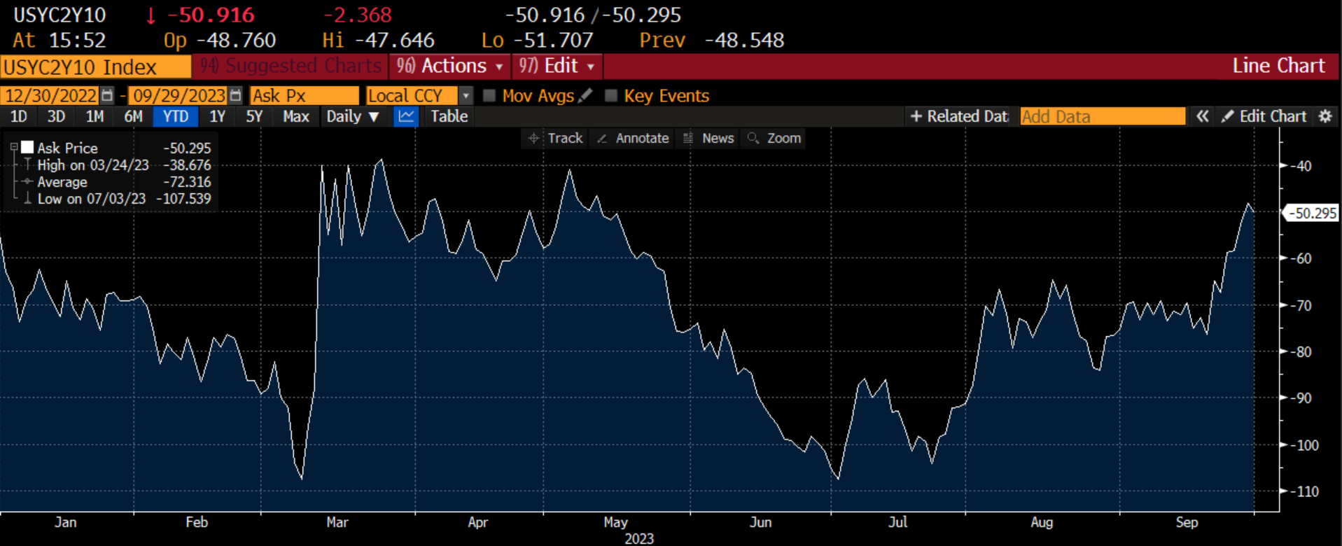 Va evidenziato che le curve dei tassi si stanno “normalizzando”, nel senso che i rialzi sulla parte a lungo termine sono più pronunciati rispetto ai corrispondenti rialzi sulla parte a breve. Questo è un segnale significativo in quanto fattorizza la possibilità che le banche centrali siano molto vicine al termine del ciclo di rialzo dei tassi.