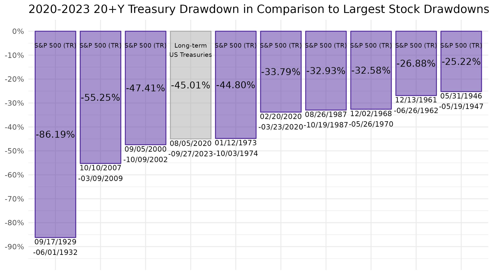 Negli Stati Uniti il declino dei titoli di Stato dell’ultimo triennio sulla parte a lungo termine della curva è addirittura confrontabile per ampiezza con le peggiori fasi ribassiste (cosiddetti mercati “Orsi”) della storia del mercato azionario, come raffigurato nella tabella che segue: