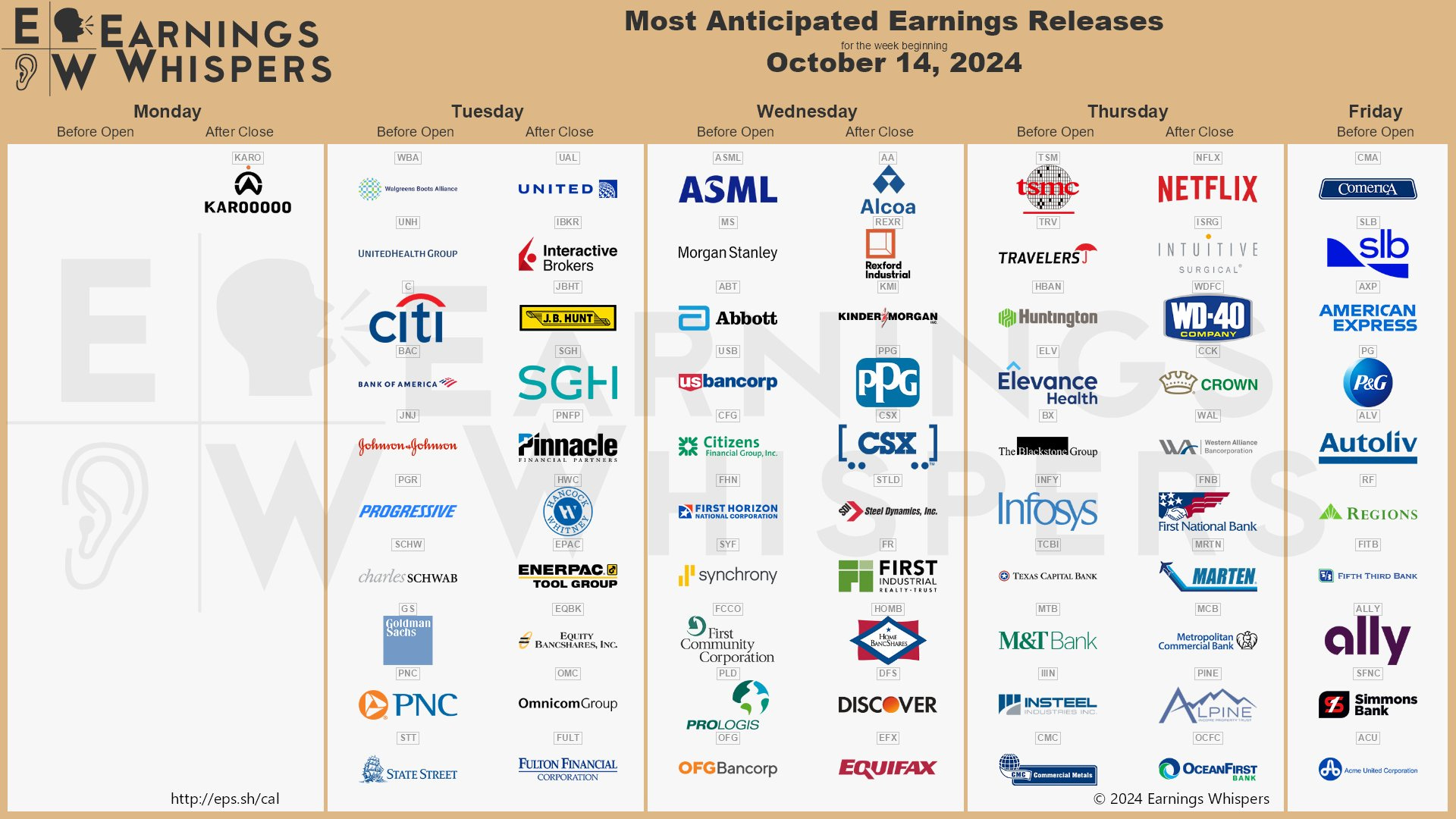 Di seguito è riportato il calendario delle principali aziende che pubblicheranno i risultati del terzo trimestre nel corso della settimana: