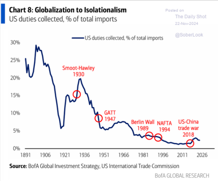 Non intendo minimizzare l'impatto potenziale che un forte aumento dei dazi potrebbe avere sul commercio mondiale, ma suggerisco che le conseguenze potrebbero essere meno gravi di quanto molti economisti prevedano.