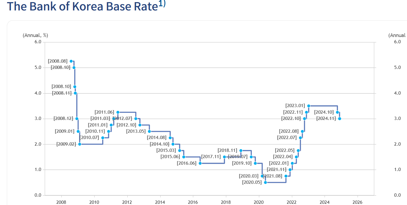 Andamento del Tasso di Base della Bank of Korea (2008-2024)