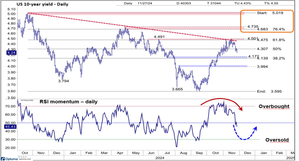 Rendimento del Treasury 10y USA: analisi tecnica e momentum RSI