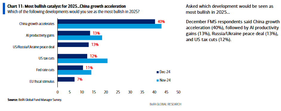 L'anno sta per chiudersi e l'ultima indagine condotta da Bank of America presso i gestori di fondi offre uno spaccato interessante sulle aspettative per il 2025.