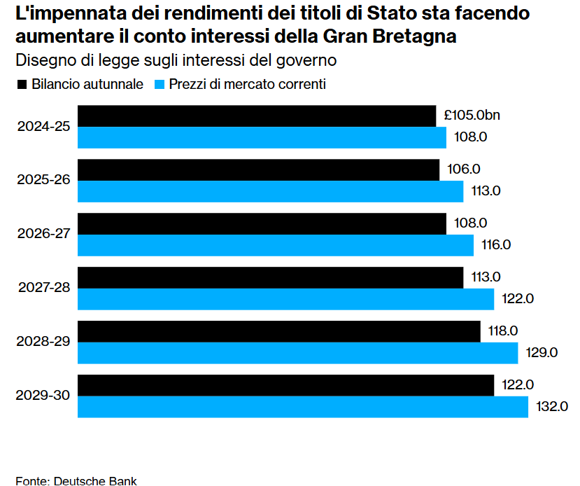 L'impatto dell'aumento dei rendimenti sui costi del debito del Regno Unito