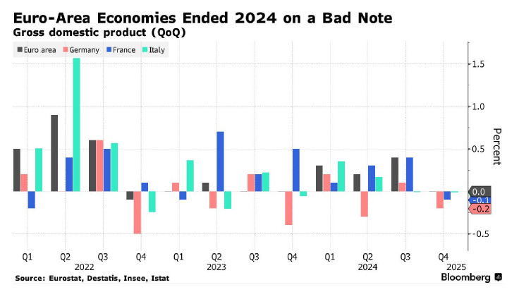 Come evidenziato nel grafico che precede, l’ultimo trimestre del 2024 ha confermato una crescita debole per l’Eurozona.