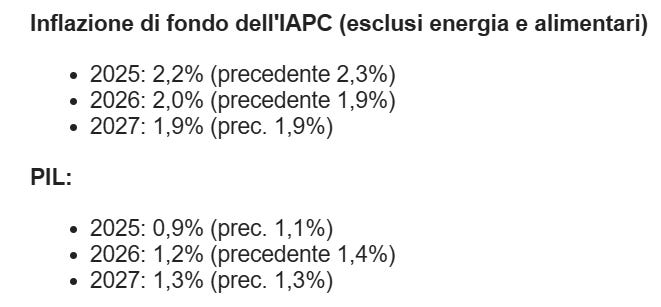 Nuove previsioni BCE su inflazione e PIL (2025-2027)