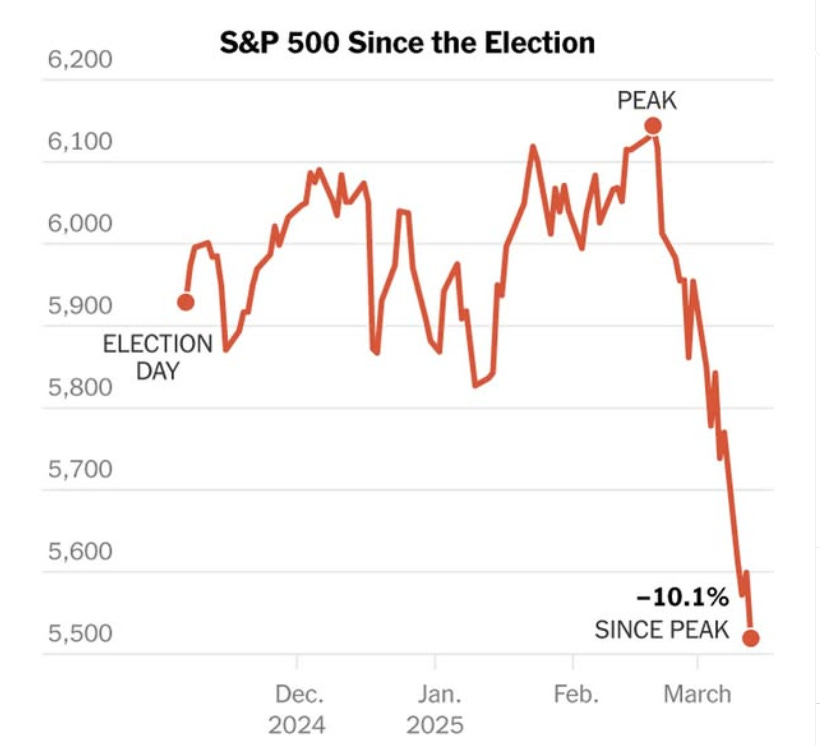 Da febbraio a marzo 2025, l’indice ha perso il 10,1% dal picco recente. Questo forte calo riflette l'incertezza economica e politica che domina il panorama attuale.