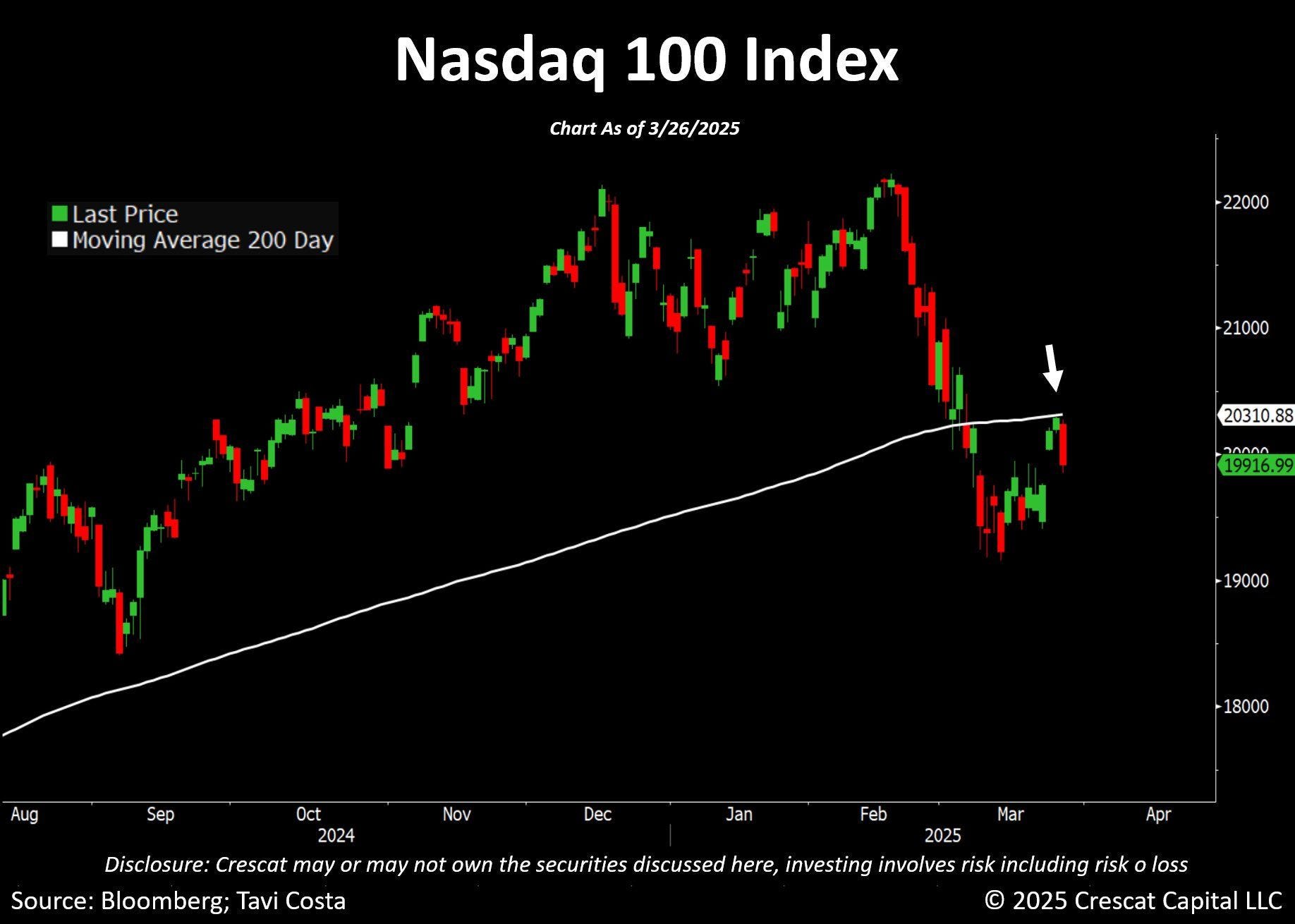 Dopo un forte calo registrato nello scorso mese di febbraio, il Nasdaq ha tentato un recupero, ma è stato respinto dalla media mobile a 200 giorni (un importante livello tecnico di resistenza). La mancata rottura al rialzo di questo livello, secondo gli analisti tecnici, indica che il mercato è debole e vulnerabile a ulteriori ribassi nel breve termine.
