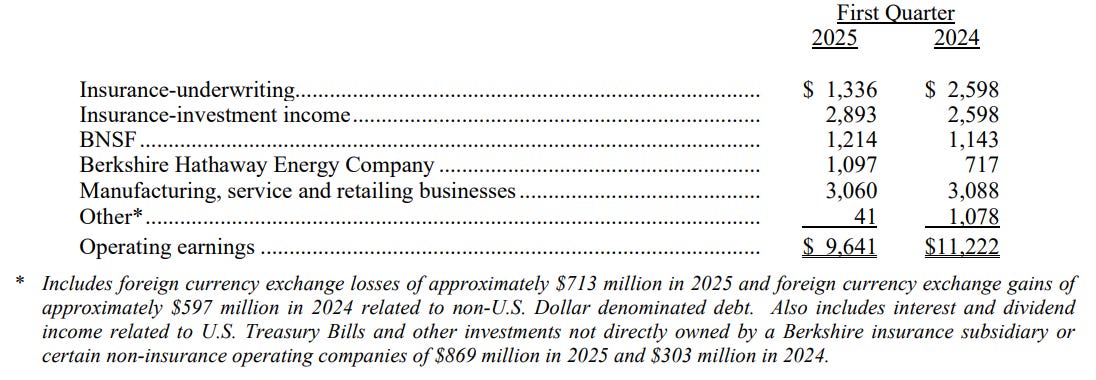 Utili operativi di Berkshire Hathaway: primo trimestre 2025 vs 2024