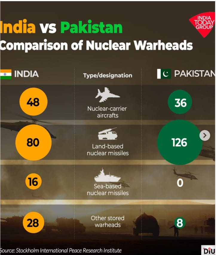 La pericolosità della situazione diventa evidente quando si guarda all’arsenale nucleare dei due Paesi.