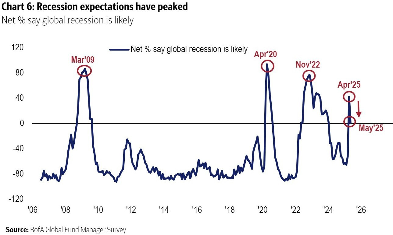 Le attese di recessione globale rallentano dopo il picco di aprile