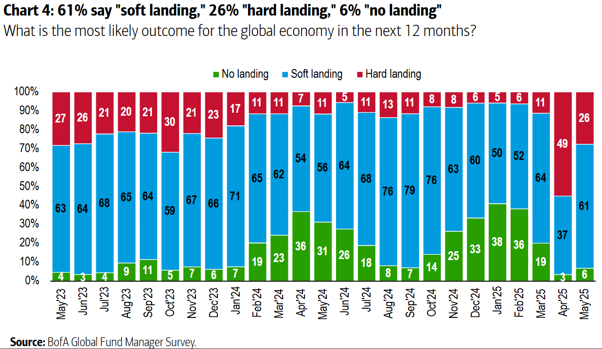 Nel sondaggio di maggio 2025 condotto dalla Bank of America tra i principali gestori globali emerge un clima di maggiore ottimismo, seppur accompagnato da una certa cautela.