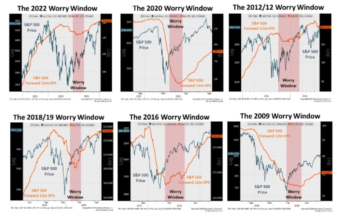Osservando attentamente i grafici, emerge un elemento comune e fondamentale: ogni "Worry Window" è stata seguita da una fase di recupero dei mercati, nonostante le profonde preoccupazioni iniziali e il pessimismo diffuso tra gli investitori.