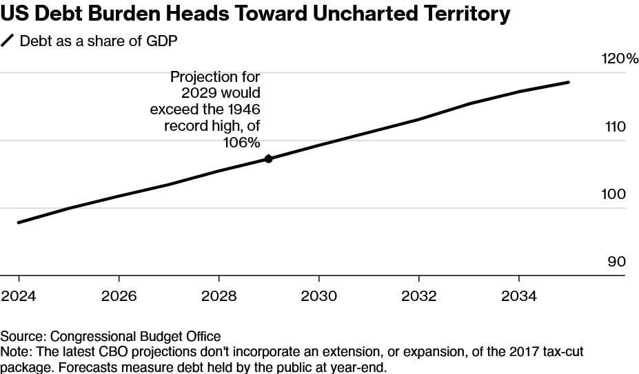 Il CBO stima, infatti, che entro il 2035 il deficit americano potrebbe toccare il 9% del PIL.
