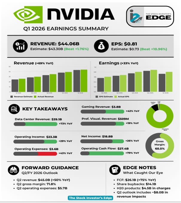 Come riepilogato nella tabella che segue, l'azienda ha registrato ricavi pari a 44,06 miliardi di dollari, un risultato che supera nettamente le previsioni degli analisti e rappresenta un aumento impressionante del 69% rispetto allo stesso periodo dell’anno scorso; anche l’utile per azione (EPS) è salito in modo significativo, raggiungendo 0,81 dollari (+33%), confermando la solida redditività della società.