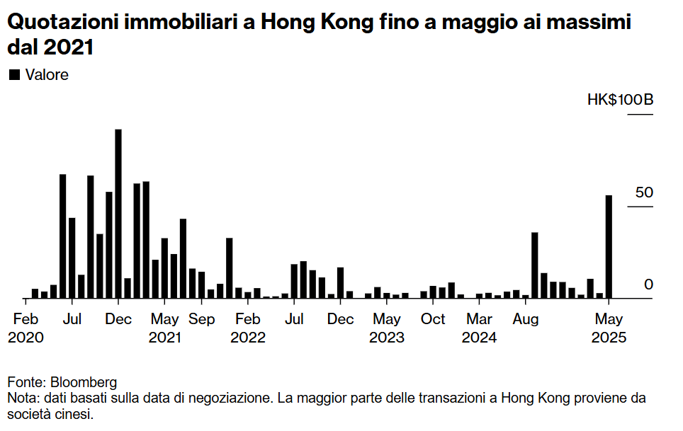 A maggio 2025, infatti, si è assistito a un forte incremento delle transazioni immobiliari, che hanno superato i 50 miliardi di dollari di Hong Kong, raggiungendo i massimi livelli dal 2021.