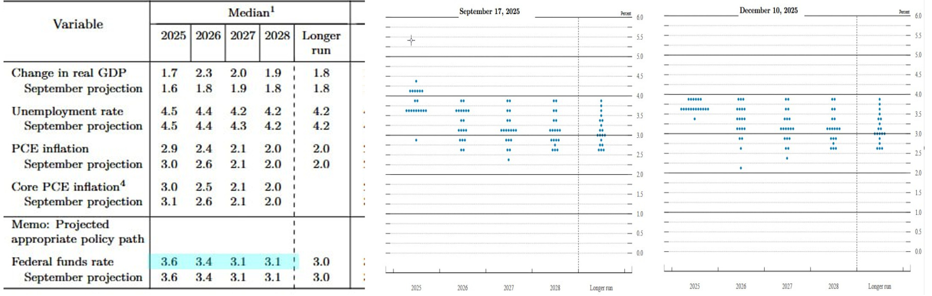 Nella tabella a sinistra emerge un 2026 in cui la crescita viene vista in miglioramento, mentre inflazione e disoccupazione appaiono stabili o in lieve calo: una combinazione che consente alla Banca Centrale di allentare la presa, ma senza dare l’idea di “liberi tutti”.