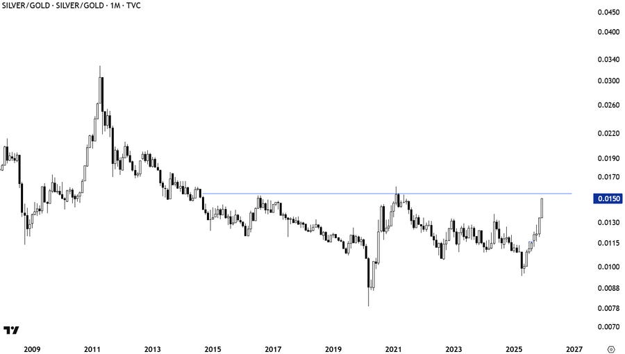 Il rapporto Argento/Oro suggerisce che non si tratta solo di euforia, ma anche di un possibile riallineamento di lungo periodo.