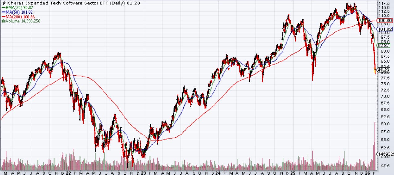 La scintilla immediata è stata la crisi del settore dei software: il timore che l’AI possa rendere obsolete alcune soluzioni, o comprimere prezzi e margini, ha innescato perdite molto forti su diversi nomi del settore, in alcuni casi superiori al 20%.