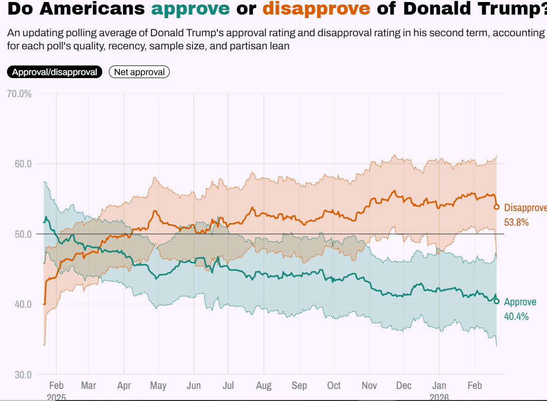 In pratica, il “saldo” politico resta stabilmente negativo: un segnale che rende più probabili mosse visibili e rapide (come i dazi) per ricompattare la base e spostare il dibattito.